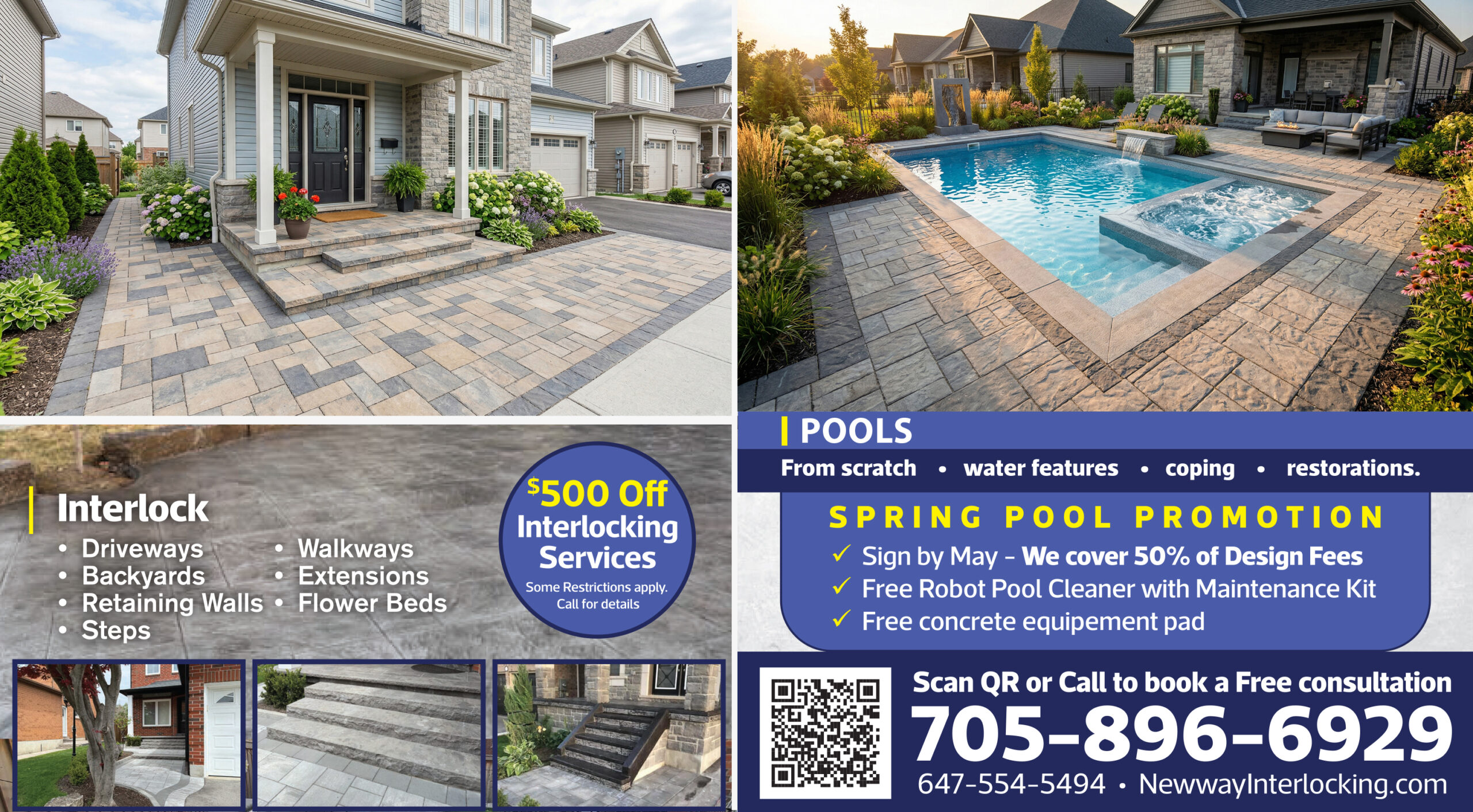 New Way Interlocking is Here to Help We are a family run company with over 20 years in the industry. We offer a variety of interlocking services including interlocking, pools & spas, driveways,